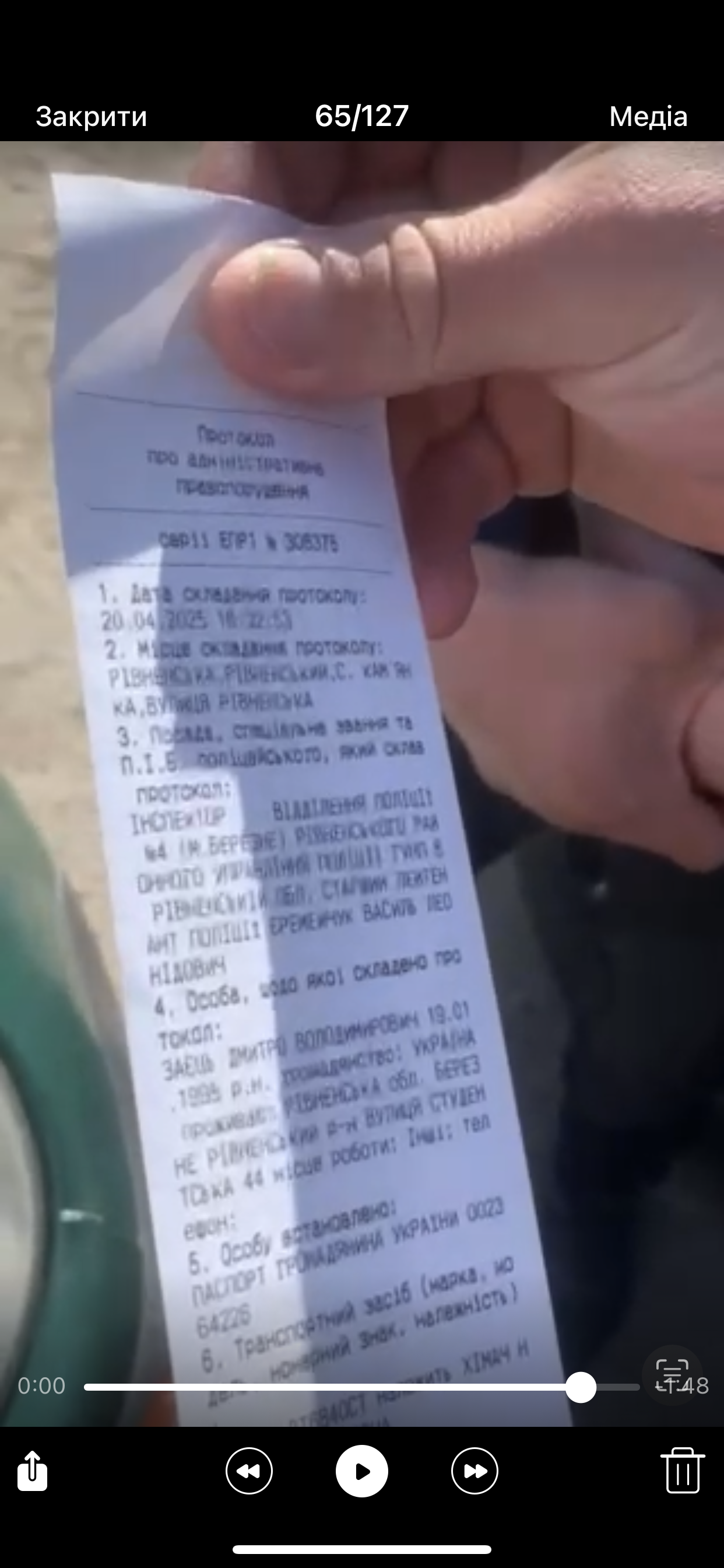 Протокол не надали оскільки чоловік не став його підписувати, а надав письмове пояснення. Є відеозапис. якщо можете переглянути скину особисто. дяку