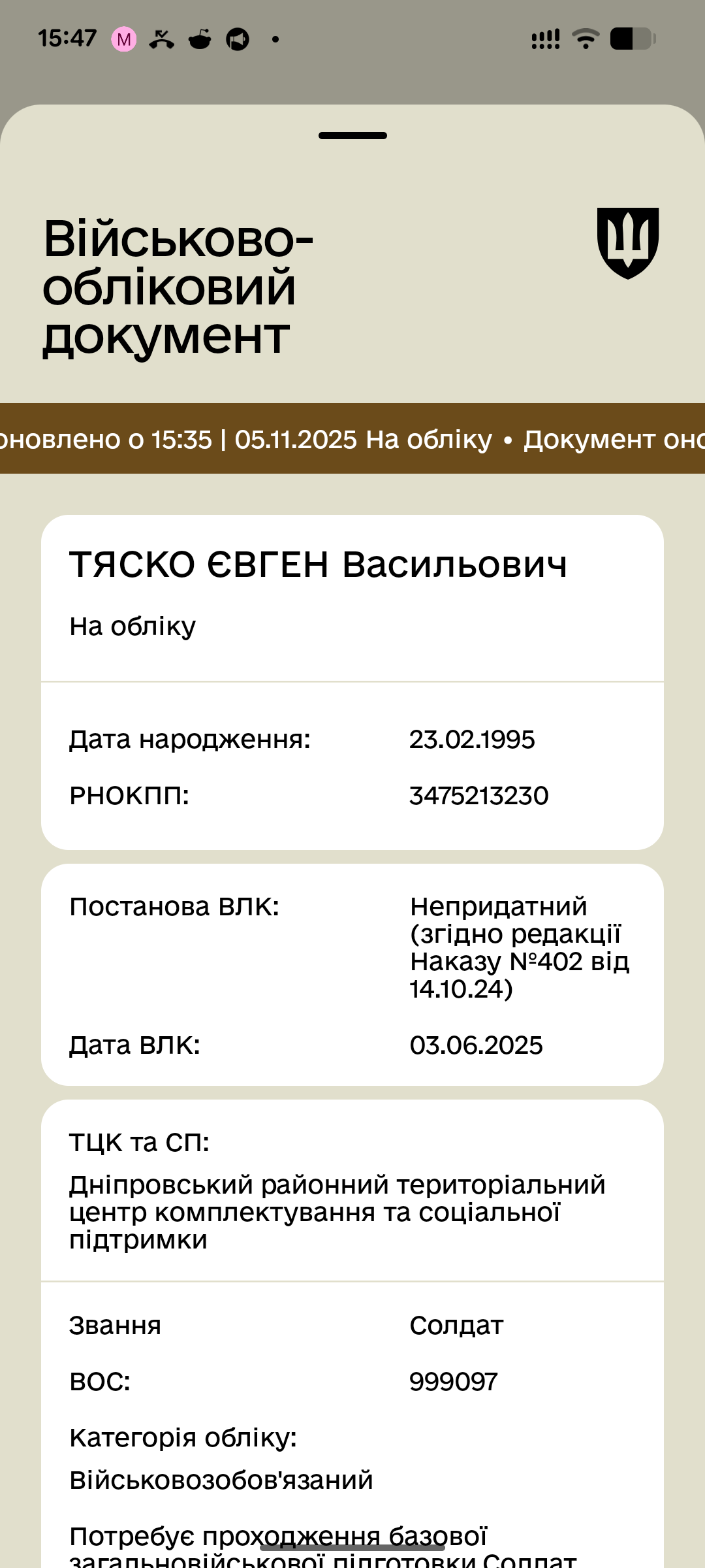 Інший варіант - піти до ТЦК ще до 11.11.2025, та спробувати дізнатися це питання.