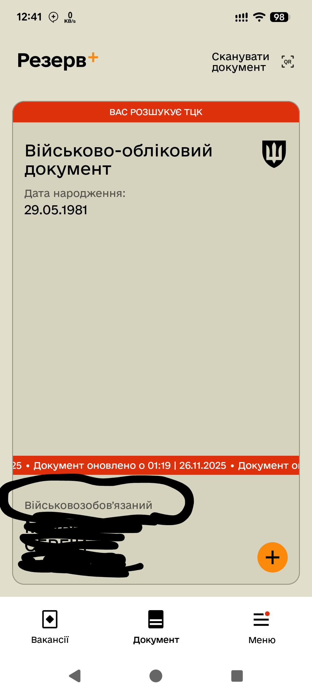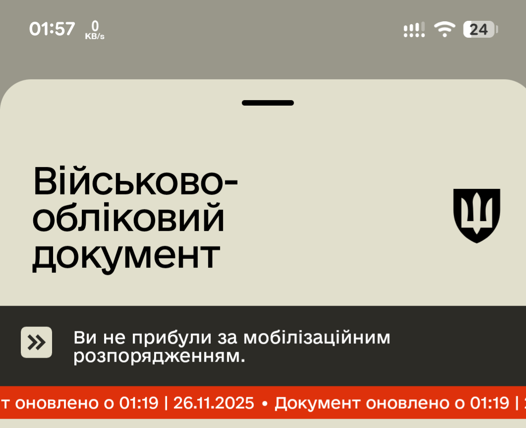 В тцк привезли не по адресу регистрации, схватили с улицы выпрыгнувши из машины, четверо их было, я так понимаю 2е полиции и 2е тцк {2 было с камерами). Ничего я не подписывал, боевой повестки не было. В дие проверил про криминальну видповидальнисть, скриншот загрузил, там всё чисто. Статус сейчас військовозабов'язанний.