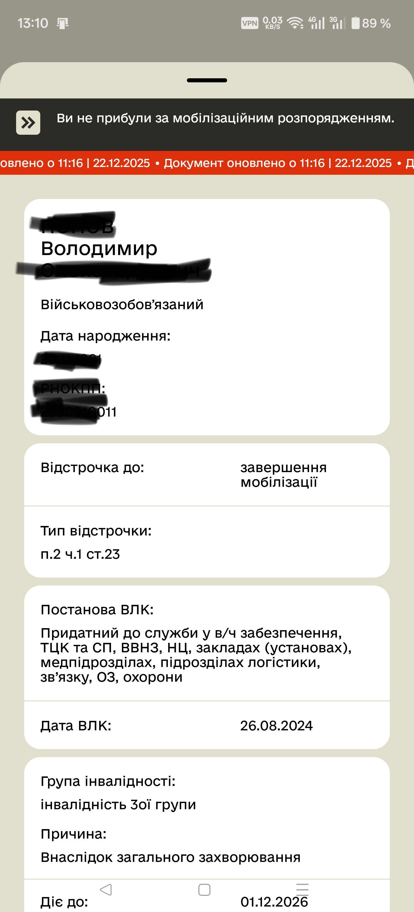 Спілкуватися у чатіВаша довідка ВЛК була дійсна до 26.08.