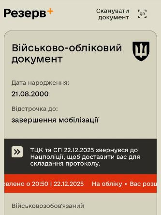 з 22.12.2025 у розшуку ТЦК (порушення обліку).