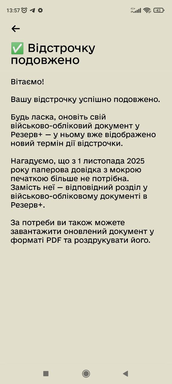 Спілкуватися у чатіЗначить на цей раз Ваша відстрочка має продовжитися автоматично.